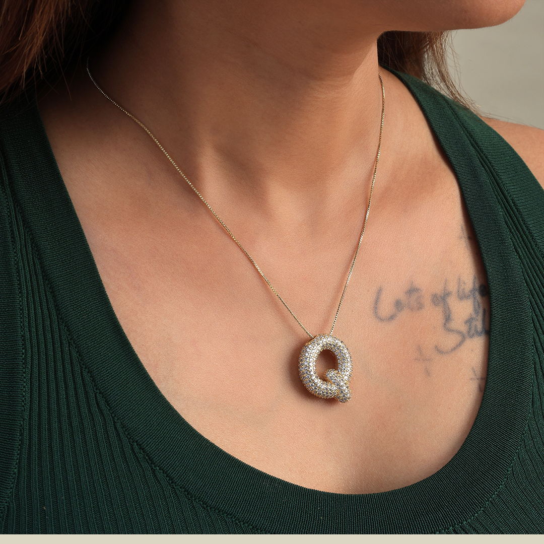 Celebrate individuality with the Alphabet Pendant, a timeless symbol of self-expression. Designed to dazzle, its sleek silhouette is encrusted with shimmering stones, capturing the perfect balance of sophistication and charm. Whether worn solo for a minimal statement or layered for a bold look, this pendant complements every style effortlessly.