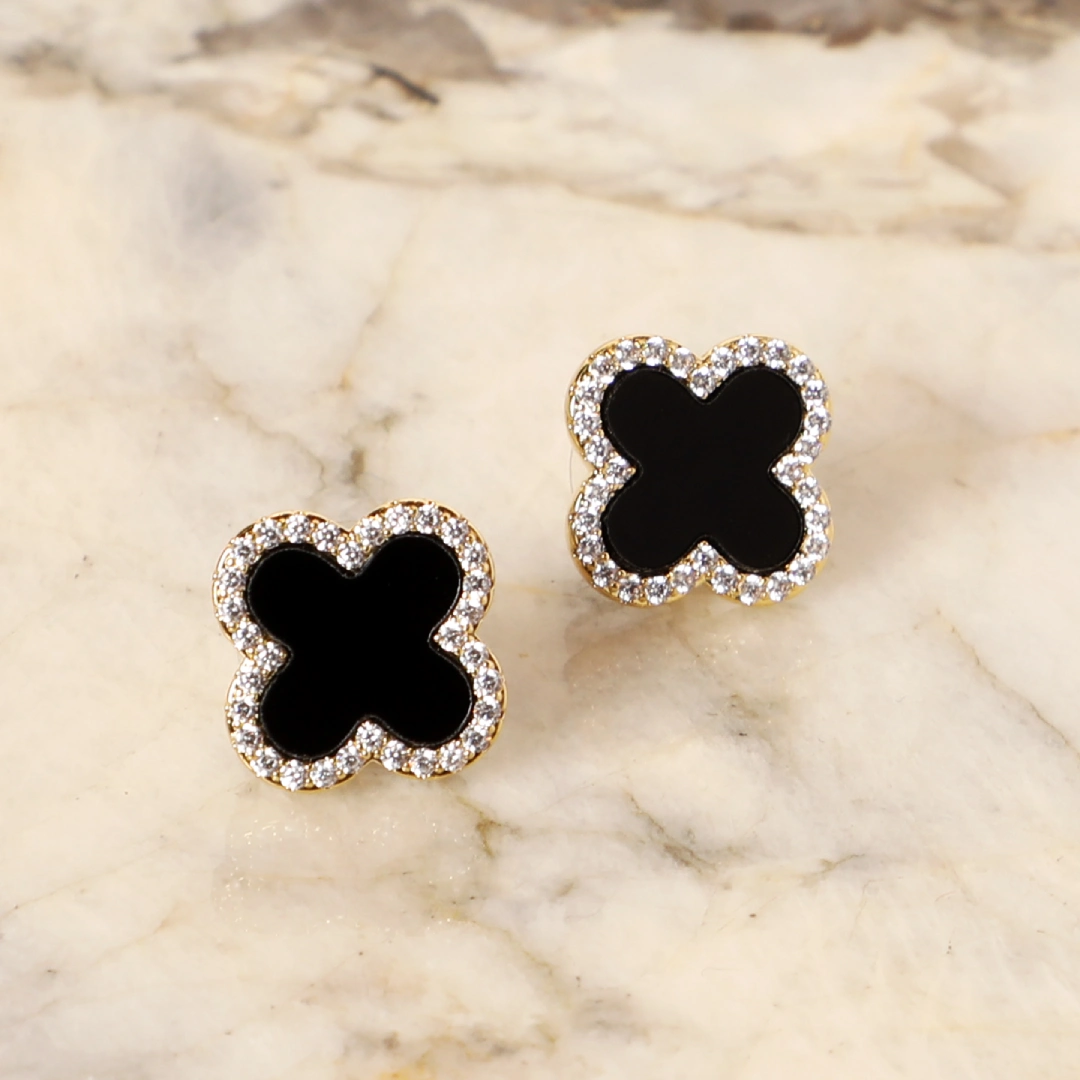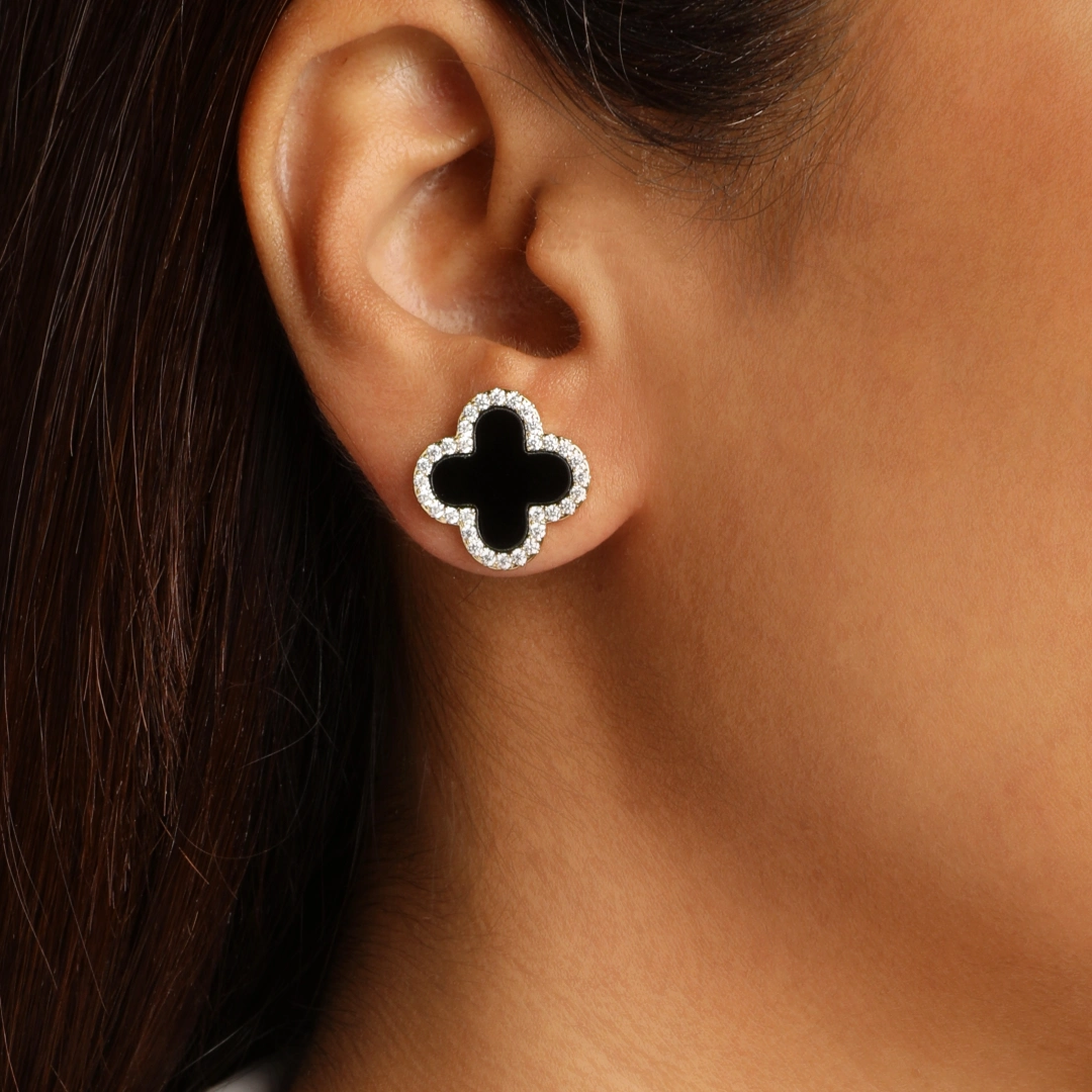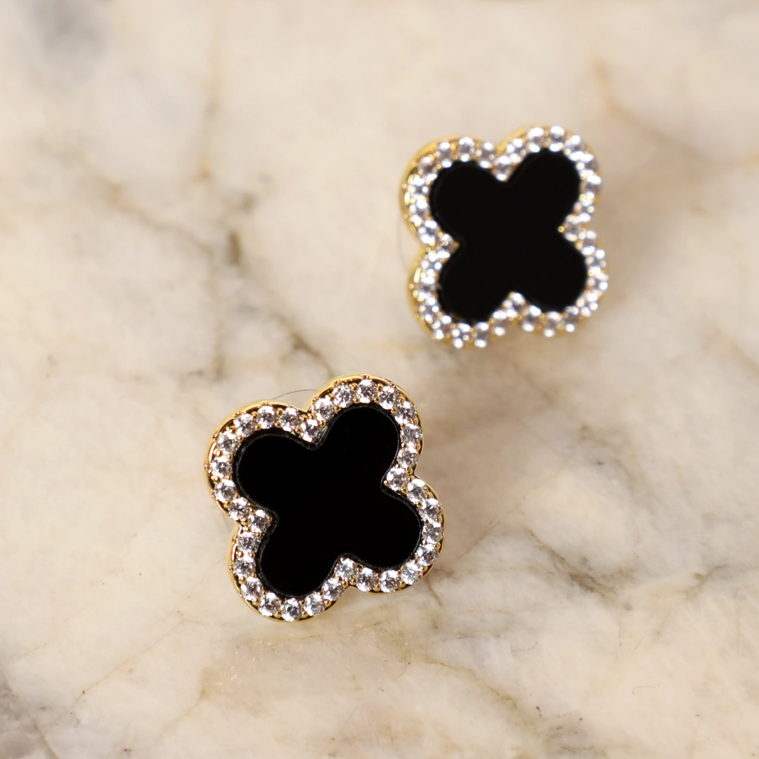 A fusion of elegance and mystique, the Black Diamond Clover Earrings ? Gold are a symbol of sophistication and charm. Featuring a timeless four-leaf clover design, these earrings are adorned with sparkling black diamonds set in a luxurious gold finish. Perfect for evening soir?es, chic brunches, or stylish outings, they add a refined yet bold touch to any look. Whether paired with a sleek dress or a tailored ensemble, these earrings make a statement of effortless glamour.