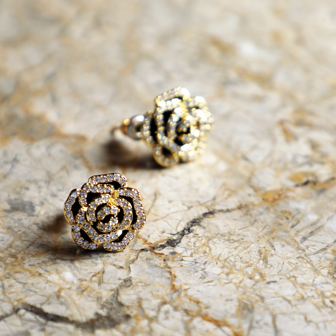 Elevate your jewellery collection with the exquisite Black Gold Rose Earrings Small a delicate fusion of elegance and artistry. Designed with intricate rose motifs and encrusted with shimmering stones, these earrings exude timeless sophistication. The contrast of black and gold adds depth and luxury, making them a perfect statement piece for both special occasions and everyday wear. Pair them with evening gowns for a graceful touch or style them with structured blazers and chic casuals for an effortlessly refined look. Let these earrings bloom in your collection, radiating charm with every wear.