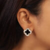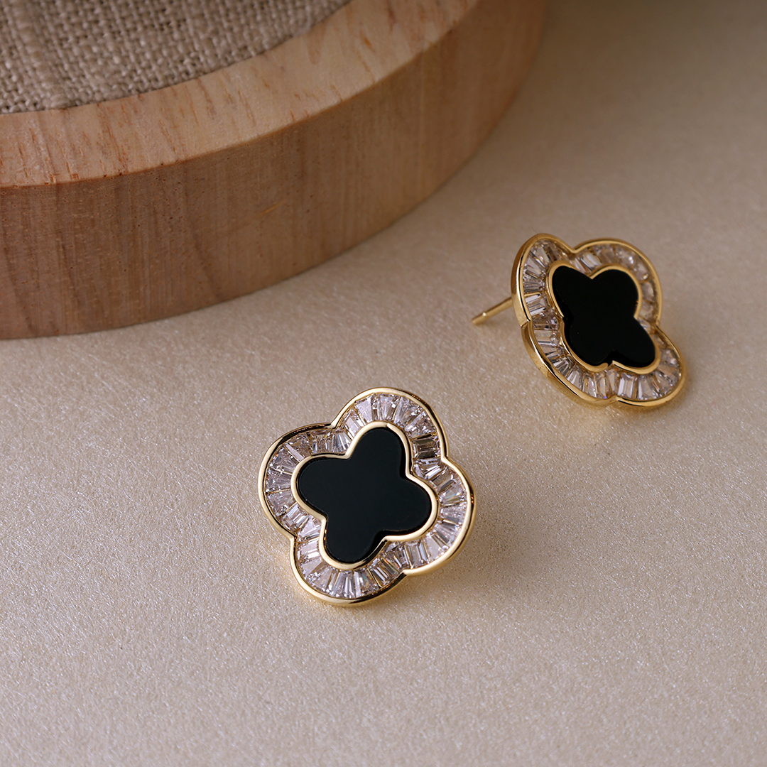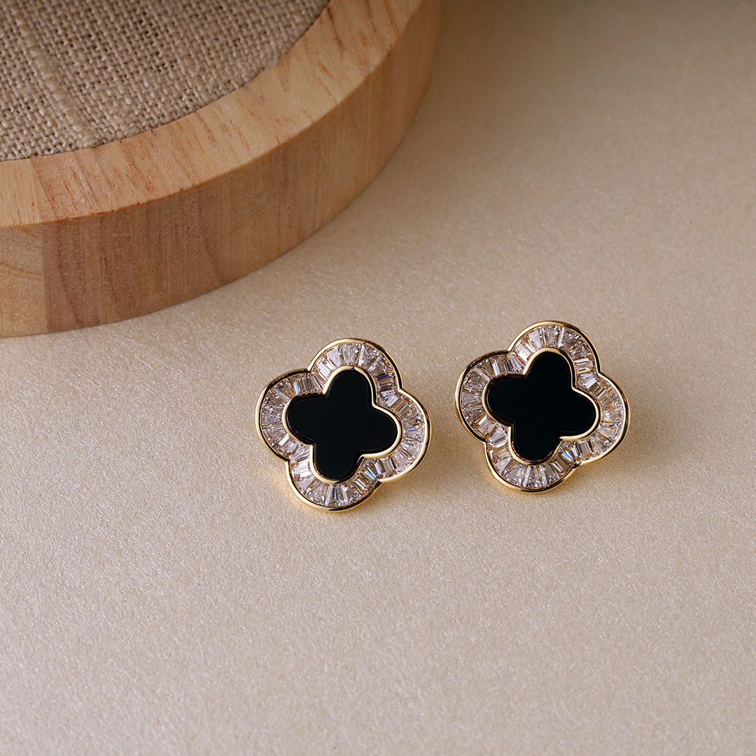 A symbol of timeless elegance, the Black MOP Clover Earrings blend classic charm with modern sophistication. Crafted in a lustrous gold finish, each earring showcases a stunning black Mother of Pearl inlay, exuding depth and luxury. The iconic clover design represents luck and grace, making these earrings perfect for both formal and casual ensembles. Whether styled with structured blazers or flowing dresses, they offer a refined yet versatile statement for any occasion.