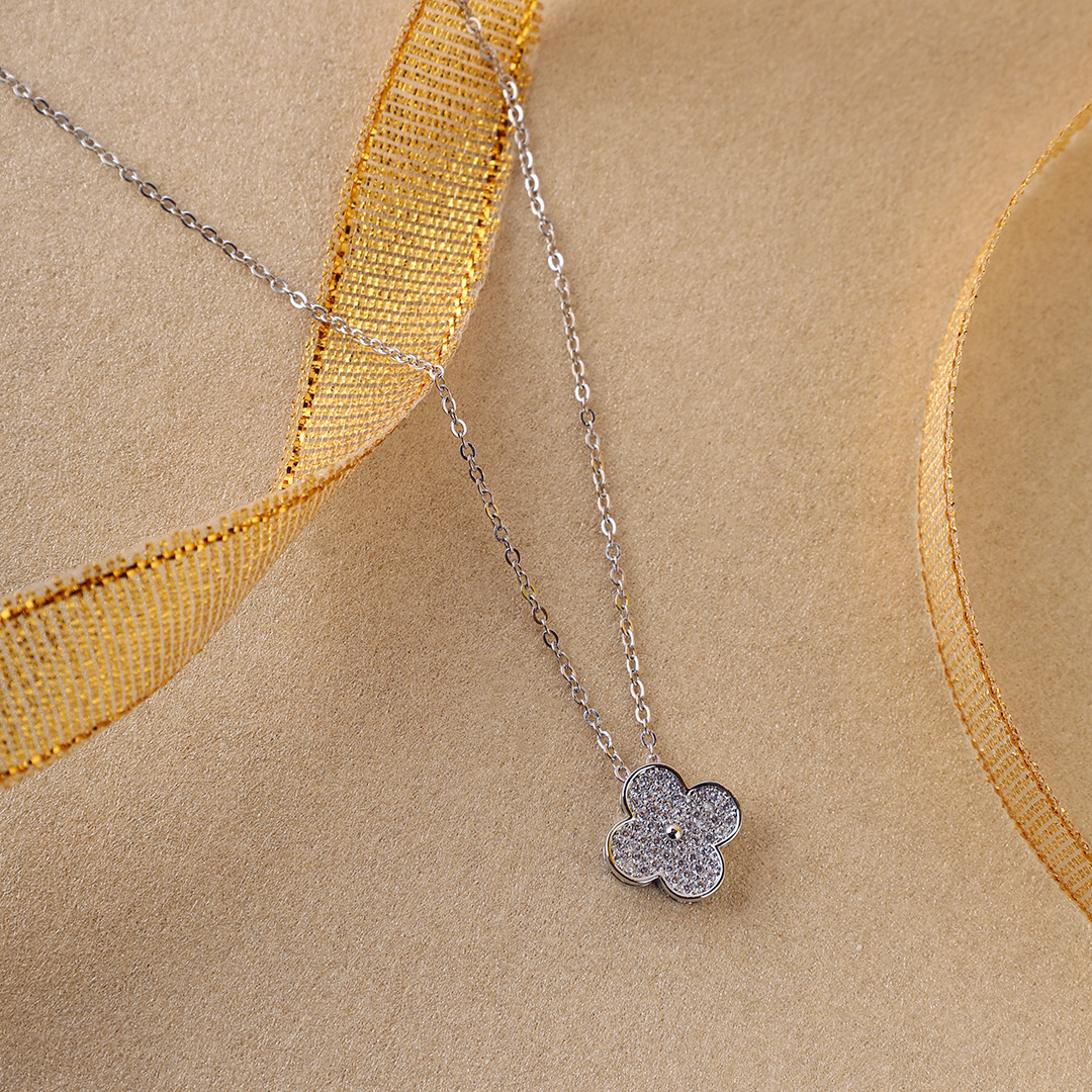 Embrace timeless elegance with the Clover Pendant – Silver, a symbol of luck and sophistication. Featuring a four-leaf clover design with a luminous Mother of Pearl inlay, this pendant exudes grace and charm. The sleek silver setting enhances its beauty, making it a versatile addition to any collection. Perfect for both casual and formal looks, it pairs effortlessly with blazers, dresses, or minimalist outfits. Wear it solo or layered for a refined, modern touch of luck and luxury.