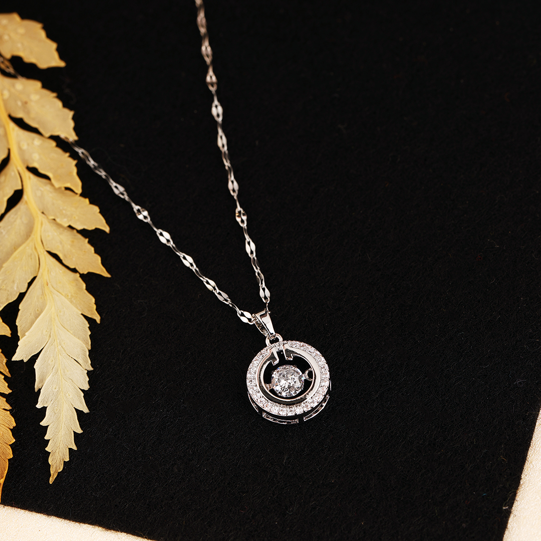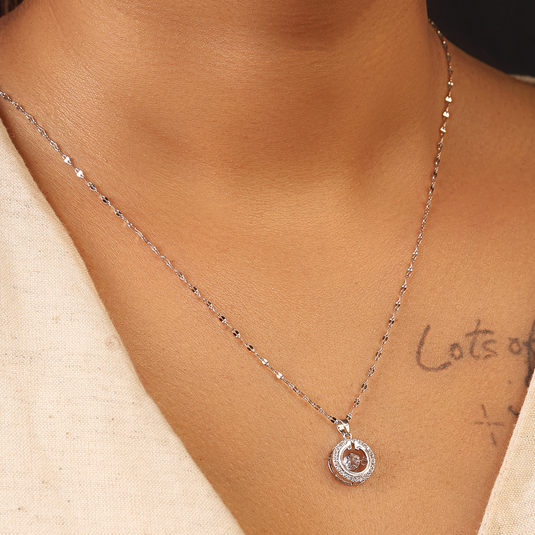 A masterpiece of elegance and movement, the Diamond in Loop Pendant is designed for those who appreciate refined sophistication. Featuring a dazzling solitaire suspended within a elegant silver loop, this piece captures the essence of timeless luxury. Perfect for both special occasions and everyday glamour, it pairs effortlessly with sleek evening gowns, tailored blazers, or minimalistic ensembles. Let this exquisite pendant elevate your style with its graceful brilliance and modern charm.