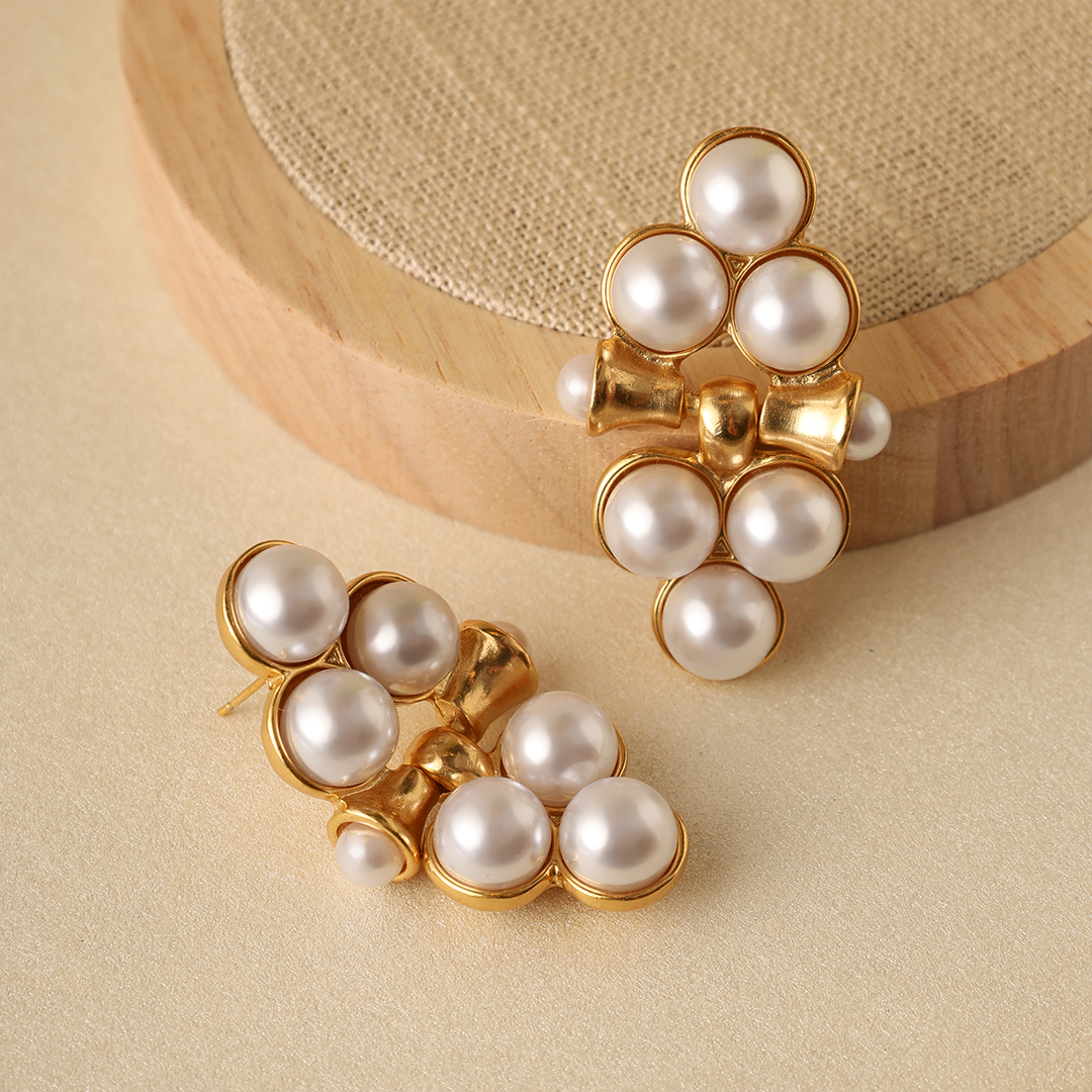 Elevate your style with the timeless allure of the Athena Earrings. Featuring luminous faux pearls clustered in a chic, structured design with a touch of gold-toned accents, these earrings exude sophisticated charm. Perfect for adding a refined touch to both your everyday wear and special occasion ensembles, they pair effortlessly with classic blouses, elegant dresses, or tailored jackets. Let these graceful earrings redefine your elegance with their understated yet captivating beauty.