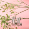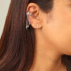 Elevate your ear game with the stylish Hanging Cuff in Silver. This contemporary piece features a delicate, curved bar adorned with subtle crystals, from which graceful silver chains with small droplet charms cascade. Perfect for adding a touch of modern movement to casual daytime outfits like a crisp shirt and jeans, or a unique edge to evening looks such as a sleek dress or jumpsuit. This cuff effortlessly complements various styles and is ideal for everyday wear or adding a subtle statement to social gatherings. Let this chic cuff redefine your individuality with its delicate yet eye-catching design.