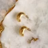 Minimal yet statement-making, the Matt Finish Gold Hoops blend sculptural elegance with a satin gold sheen. Their fluid, organic form adds quiet luxury to any outfit be it a tailored blazer or a breezy dress. Designed for everyday sophistication, they’re perfect for work meetings, weekend brunches, or dinner dates. Style them with a sleek bun and dewy makeup for that effortless, clean-girl finish.