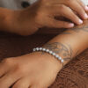 An exquisite blend of modern elegance and timeless charm, the Rhea Diamond Bracelet is designed to dazzle. Featuring a delicate row of pave-set diamond spheres on a sleek silver-tone adjustable chain, this piece is the epitome of refined luxury. Its effortlessly chic design makes it perfect for both everyday wear and special occasions. Whether worn solo or layered with other pieces, the Rhea Bracelet adds a touch of brilliance to any look.
