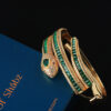The Serpent Kada in green is a bold yet elegant statement piece for any occasion. Crafted with precision, its sleek, coiling design symbolizes strength and grace, while dazzling green stones add a captivating shimmer. This striking piece brings glamour to evening gowns, sophistication to chic daywear, and power to formal attire. Perfect for festive celebrations, pair it with sarees or lehengas for a regal touch. Whether styled solo or layered, this kada effortlessly enhances your look with refined allure and timeless charm.