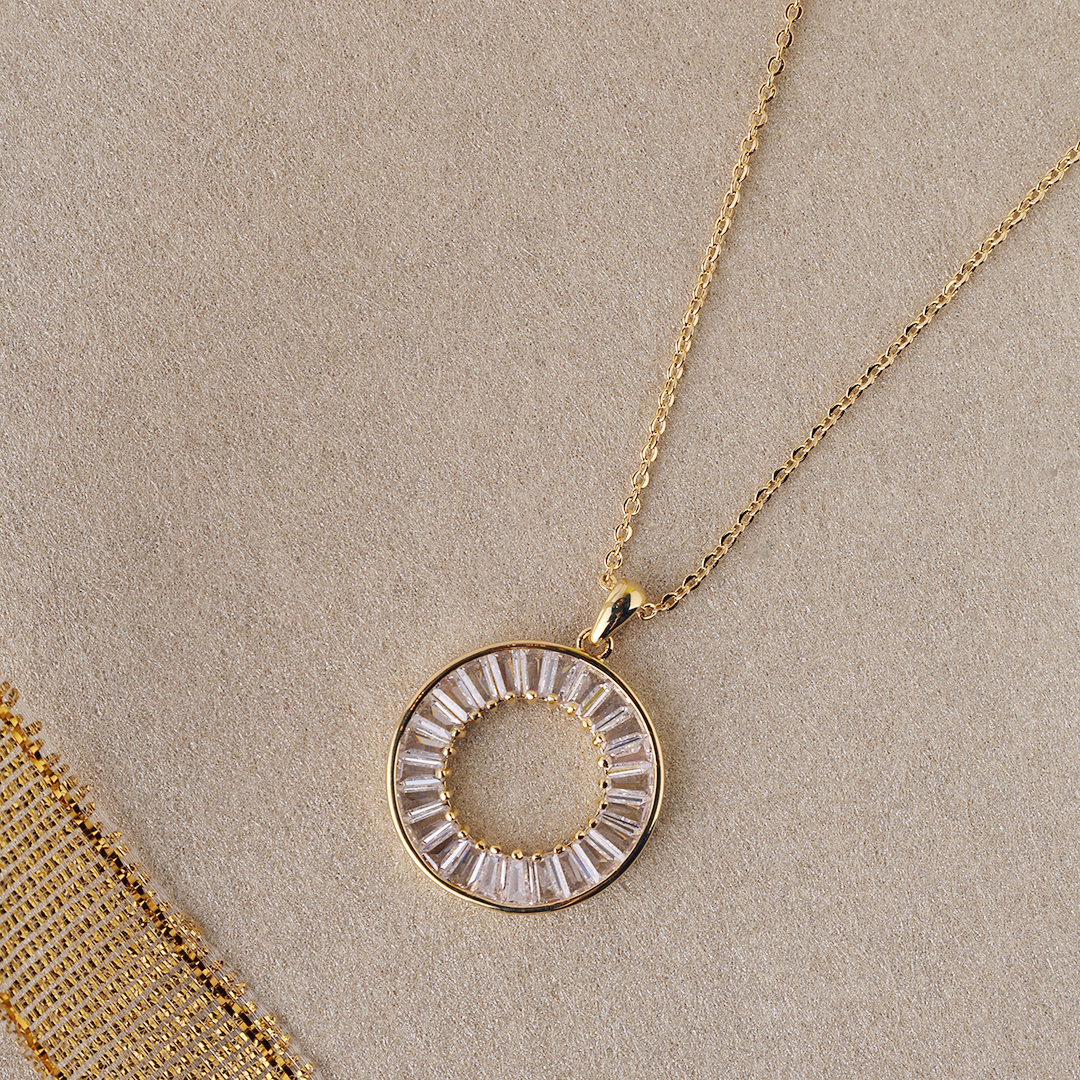 Embrace timeless elegance with the Sesha Pendant, a radiant symbol of sophistication and grace. Crafted in a luminous gold finish, this pendant showcases a sleek and modern design, making it a versatile addition to your jewellery collection. Whether styled with a classic evening dress or layered with everyday ensembles, its refined charm effortlessly elevates your look. Pair it with structured blazers for a polished touch or wear it solo for a statement of understated luxury.
