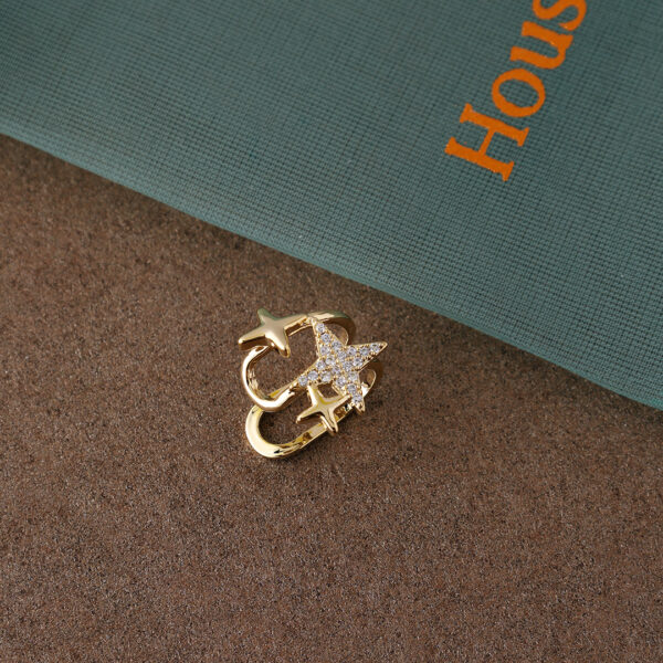 These aren’t your typical earrings; they’re like miniature constellations embracing your ear. Delicate golden bands playfully curve to hug the ear, each adorned with sparkling star shapes. One star on each cuff shines brighter, fully pavé-set with dazzling crystals. Imagine these adding a whimsical touch to your everyday style or a subtle sparkle to a dressier look. These ear cuffs are perfect for those who love unique, eye-catching pieces and want to carry a little bit of magic with them. Let this enchanting pair redefine your ear adornment with their playful and radiant design.